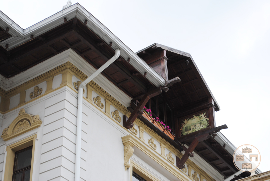 Clădirea impresionează prin arhitectura impunătoare, cu decorații bogate atât la interior, cât și la exterior. Interiorul încântă prin tavane și plafoane decorate și pictate, de care atârnă candelabre elegante. Pereții cu stucaturi; uși sculptate cu geamuri gravate; sobe de faianță; mozaicuri; o scară interioară în spirală – totul impresionează. La exterior se remarcă fațadele bogat ornate cu stucaturi, balcoanele și terasele; desenele pictate ale foișorului de lemn de la mansardă; ceasul solar.