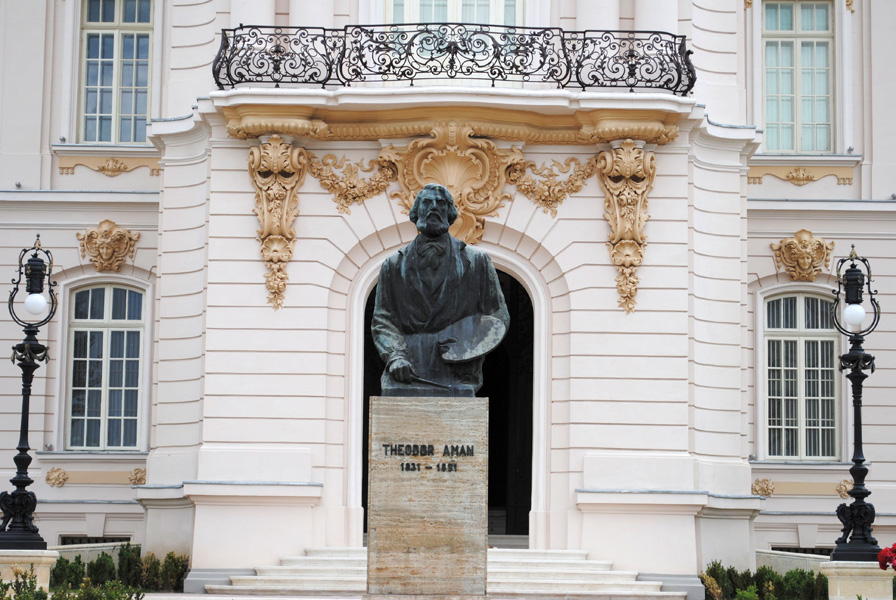 În prezent, în curtea din fața Palatului Jean Mihail este amplasat bustul pictorului Theodor Aman, operă a sculptorului Ion Jalea.